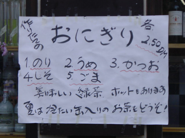 ドイツで見つけた、おにぎり屋さん。値段的にはそんなにぼったくりではございません(2.5DM=約150円)