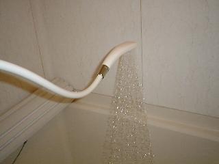 背景: ・お風呂でいつもと違った自分を演じてみたい。 ・お子様にちょっと格好いいところを見せてみたい。 ・日々のお風呂ライフに飽きてしまった。 そんな貴方にぴったりの技でございます。 やり方: シャワーヘッドから1mぐらい離れたホースの部分を持って、 水を勢いよく出すだけです。 水の勢いを上手く調節すれば、シャワーヘッドの部分が写真のように見事に 空中に浮遊します。それはそれはすごいです。 注意点: 空中シャワーの技を写真に撮るときは注意深く行いましょう。 失敗すると、シャワーヘッドが暴れ回って、そこら中水浸しに なって大変なことになってしまいます。っていうか、なってしまいました。 ![]() | |