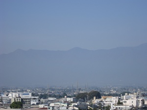 松本市街 後ろは北アルプス