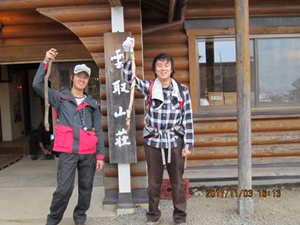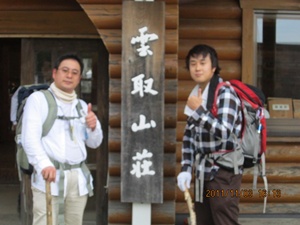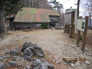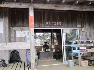 | 霧藻ヶ峰小屋。かなりへばっている。ここで休憩を取り昼食&小屋のまずいコーヒーを飲む。三峰神社の売店で作ってもらったおにぎりは非常に美味かった。