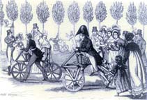 | 1818年 | ドライス男爵、パリのリュクサンブール公園で、ドライジーネを初めて公開。 イギリスのデニス・ジョンソンは、ドライジーネを改良し、特許を取得。これが流行して、ホビーホースとかダンディーホースと呼ばれる。 |