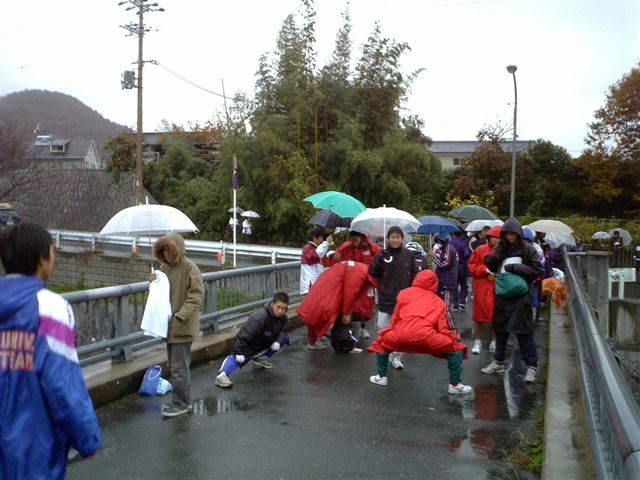 2005年12月7日(日)京都学生駅伝が開催されました。小雨が降り続く寒い日でしたが、6名の工繊大チームは持てる力を十分発揮できたと思います。来年も益々頑張って下さい。