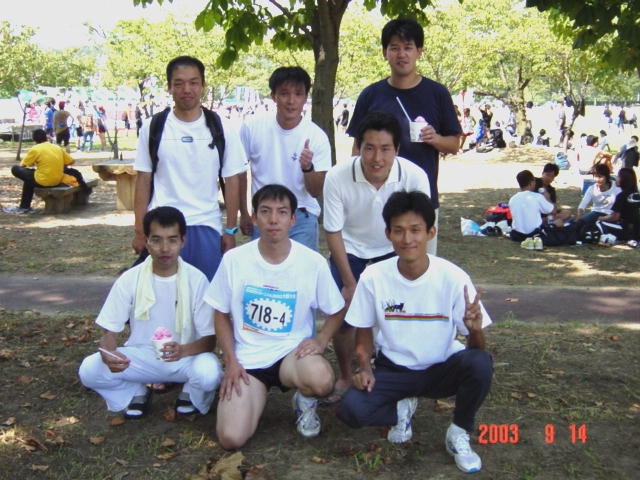 大会名はEKIDENカーニバル2003(万博公園で開催)、今年は2チーム出ました。メンバーと記録は以下の通りです。