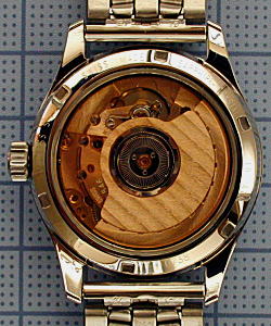 ムーブはETAの2892A2で、2824と同様、数多くの時計に使われています。8振動で緩急微調整装置を搭載、大きなローターの受けが特徴的なキャリバーですね。自動巻にしては手巻きの感触が良くて、カリカリと小気味よい音をさせてパワーリザーブが巻上がっていくのは楽しいです。