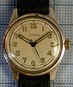 エテルナはボールベアリングを採用したエテルナマチックが有名ですが、それ以前にはバンパー自動巻を作っていました。 最初のバンパーはスモセコだったようなので、センセコの833はその後継と思われます。 16石という石数とムーブの直線的なデザインがオモシロイですね。