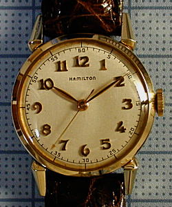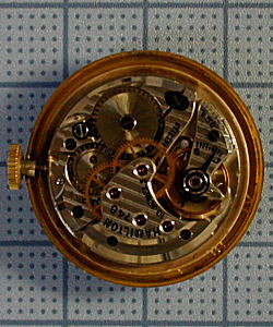 小振りで手巻のハミルトンです。ダイヤルのインデックスはアプライドで、アメリカンウォッチによく見られるデザインの数字です。 でも、ラグはそれほど変形してませんし、ケースも丸くておとなしいので、異端児なんでしょうか(笑)。 ムーブには飾り彫りが施されており、仕上げはそれなりに手が掛かっています。