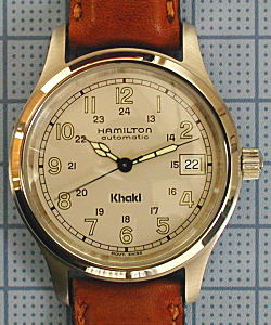 ハミルトンの少し前のカーキです。ダイヤルやコブラの形をしたハンドのデザインがクラシックで、ビンテージやミリタリーっぽい印象を与えています。