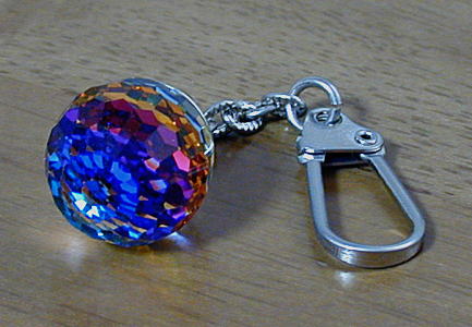 キーホルダー1より小さくて、ほぼ球形になっています。金具に付いているクリスタルの面が着色されており、外からその色が透けて見えています。