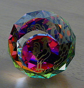 日本限定発売のペーパーウエイトです。 正月グッズの干支の縁起物として企画されたものらしいですが、十二支すべてが発売されたかどうかは不明です。 上から動物の絵が見えるようになっているのが、通常のペーパーウエイトと違います。これは酉(ニワトリ)です。