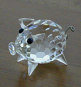 このブタは耳と脚の直線的なデザインと、巻かれたシッポがオモシロイです。