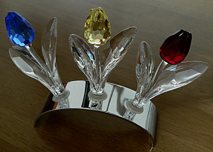 SCS会員誌からも分かっていたことですが、チューリップ3年目はやはり黄色でした。青と赤もいっしょに専用台に並べて撮影しましたが、いかがでしょうか。 また3年更新したので、予想通りミニ・チューリップももらえました。なかなかカワイイので、こちらもご覧ください。
